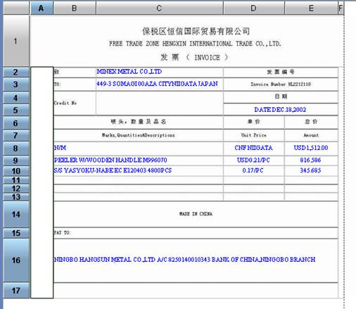 使用扫描仪,注意要设置像素单位,使得其和标准纸张大小一样,或者扫描之后用画图软件对图片进行压缩,缩成标准纸张大小,且分辨率设为72。得到空白票据图片如下图。请注意发票名称、表格线、表格中的各个标题都是空白发票已经印刷好的,报表需要填写生成的是空白部分。